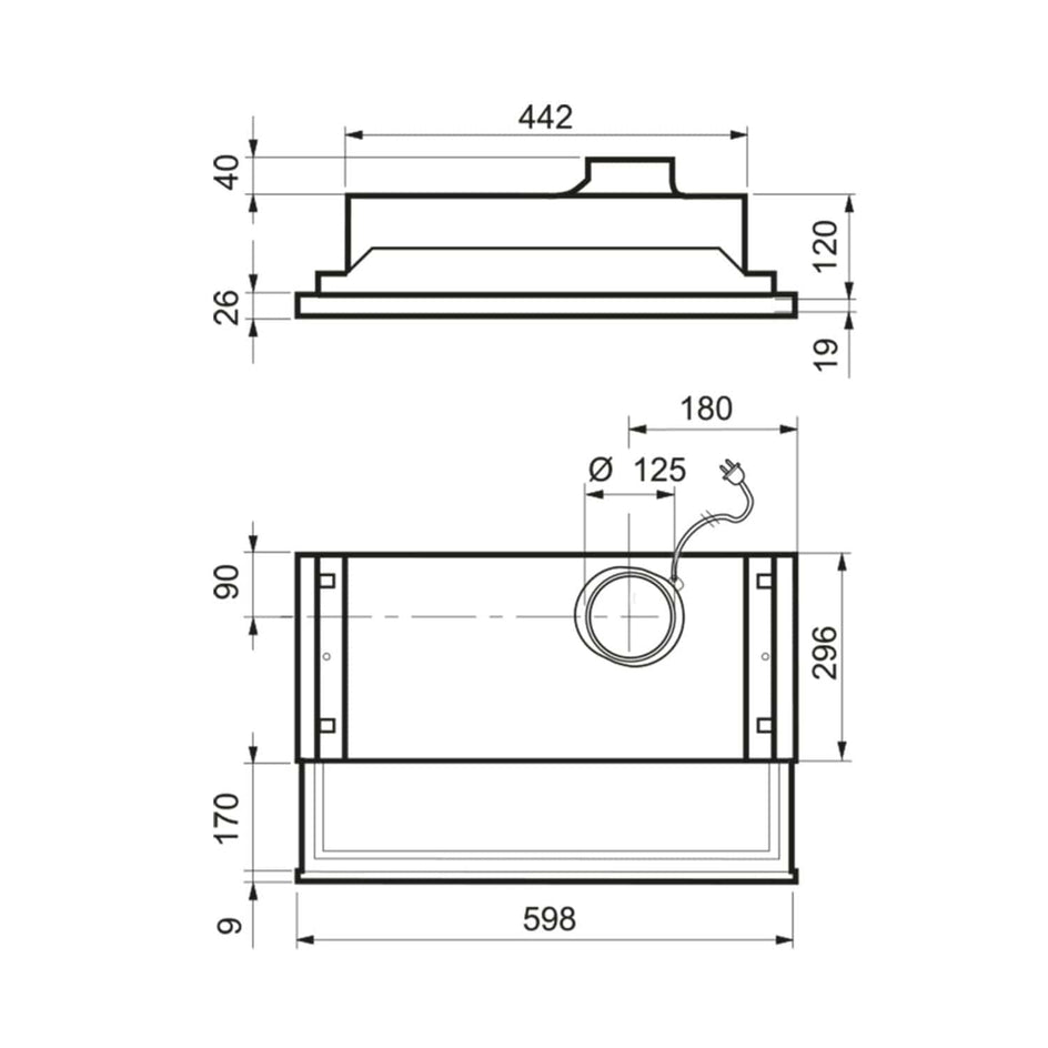 Fondue-M kjøkkenvifte er en elegant slimline innbyggingsmodell for overskap med 3-trinns hastighets-regulering. Hetten er utstyrt med vaskbart fettfilter. Belysningsdelen er utstyrt med LED 8 W, sokkel E27. Leveres med 230V jordet ledning med plugg. Hetten er lettmontert. Det kreves min. 45 cm monteringshøyde mellom elektrisk ovn og underkant på kjøkkenhette.