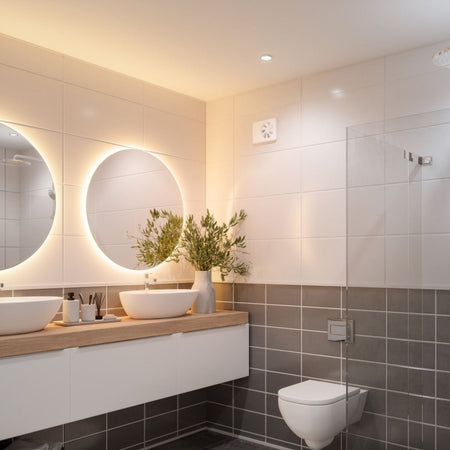 Flexit baderomsvifte Vario for optimal drift og komfort. Viften har mange reguleringsmuligheter og kan tilpasses brukerens behov. Den intelligente fuktstyringen sørger for effektivt avtrekk.