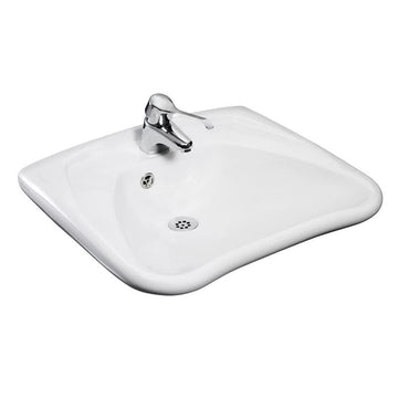 MATRIX CURVE II ergonomisk vask, 23.6" x 19.2" x 5.9'', med kranhulldiameter 1.4'' og overløp. Leveres med avløpsbeslag. Den konkave forkanten stabiliserer både stående og sittende brukere. De avrundede kantene er også behagelige å holde og hvile mot. Den flate bunnen gir plass til bena under. Materiale: Keramikk. Egnet for oppvaskarmaturer fra seriene Pressalit PLUS, SELECT og VALUE.