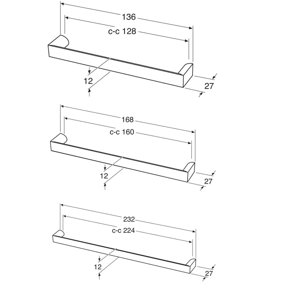 - Bredde: 12,8 cm / 16 cm / 22,4 cm