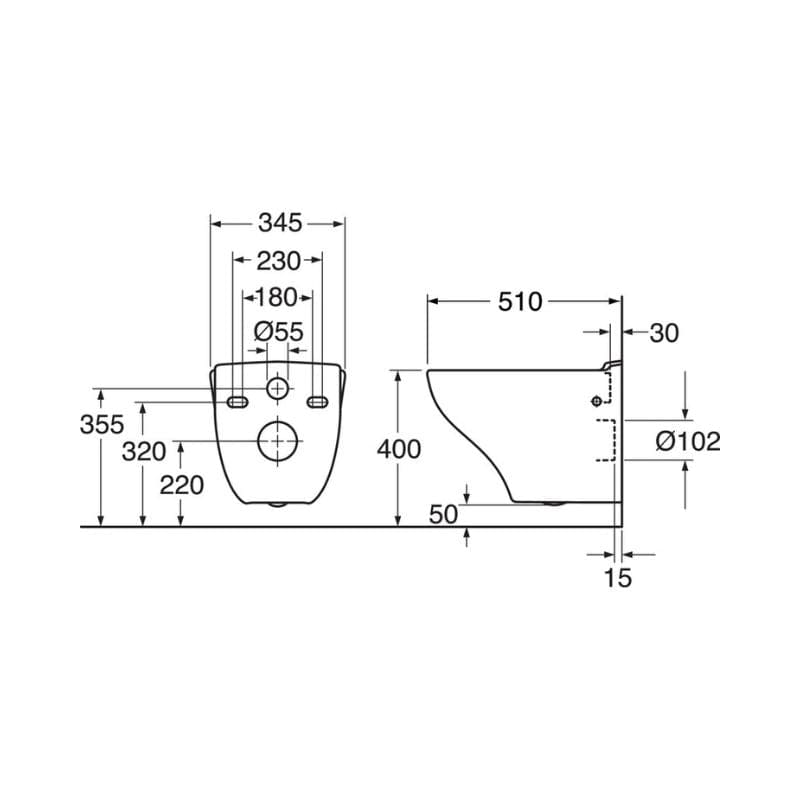- Åpen rand (Rimless / Hygienic Flush) med fullstendig spyling av skålen