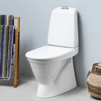 - Gustavsberg Nautic 5500 toalett med heldekkende kondensfri spylesisterne, stille påfylling, opphøyd trykknapp, justerbar vanntilkobling og skjult feste mot gulv.