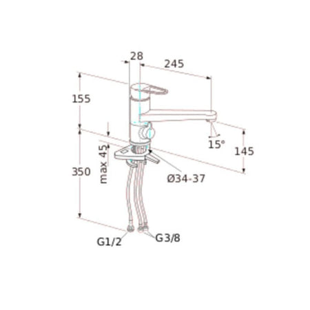 - Typegodkjent 3/8" fleksibel vanntilkobling, for enklere montering