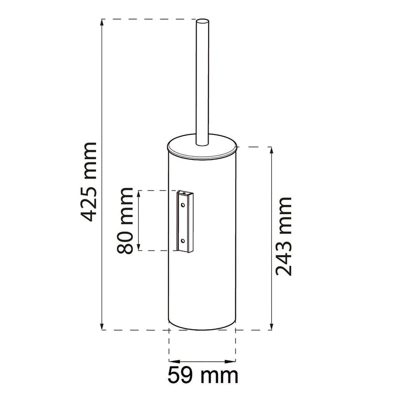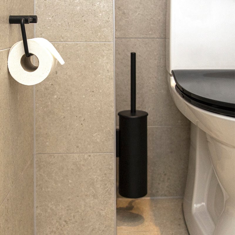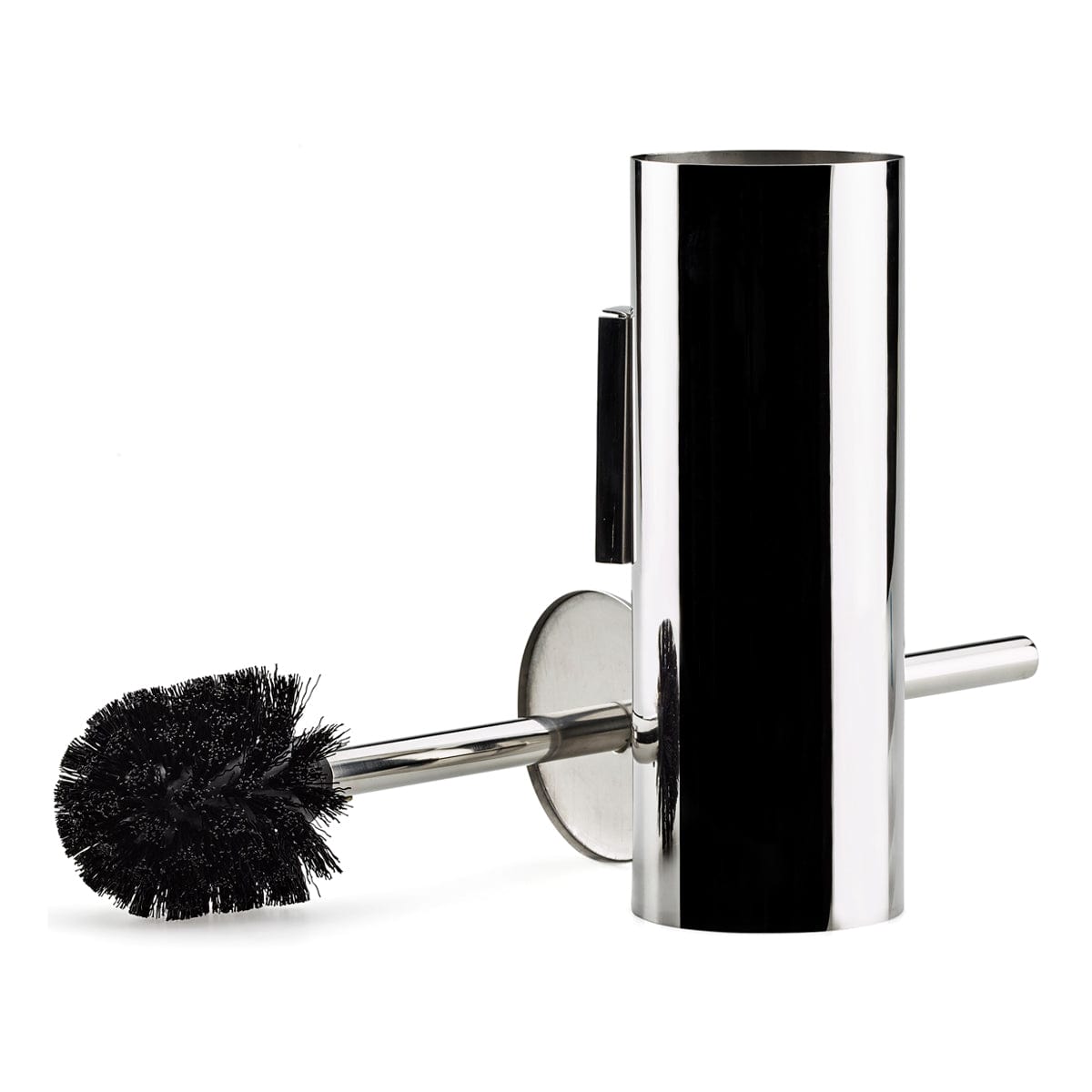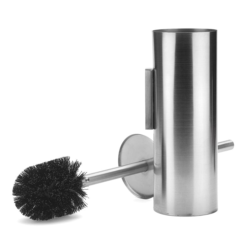 Veggmontert toalettbørsteholder i rustfritt stål. Med en avtakbar indre beholder er den enkel å rengjøre, og toalettbørsten muliggjør enkelt vedlikehold på offentlige toaletter.