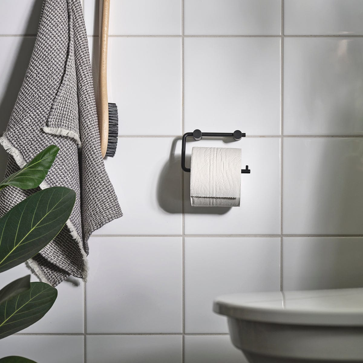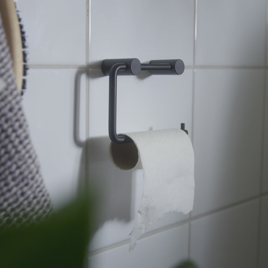 Toalettpapirholder av stål med skjult innfesting. Bygger ut 40 mm.