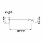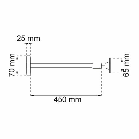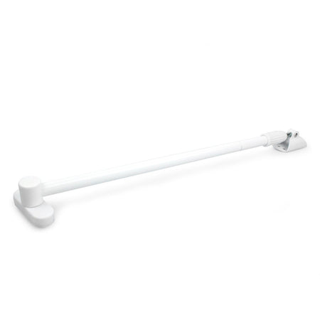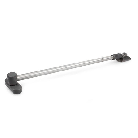 Dørbrems for utadslående dører med montering på anslagssiden. Dørbredde 700 til 910 mm. Feste og teleskoprør av lakkert stål. Stang av rustfritt stål med leddhode og justeringshylse av plast.