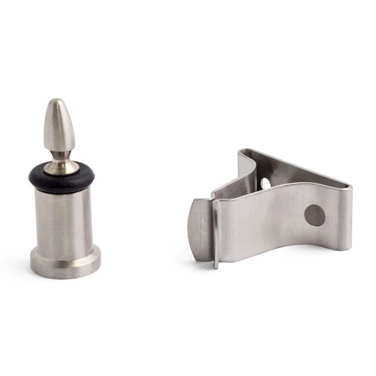Dørholder av rustfritt stål med fjærende sluttstykker. Skjult innfesting av veggdelen. Leveres inkludert skruer.