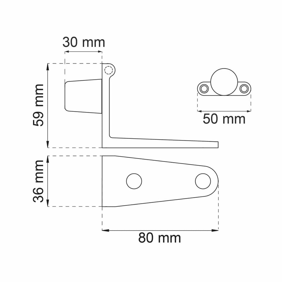 Dørstopper med holder av rustfritt med gummistopper. Leveres inkludert skruer. Beskytter dør og vegg mot slag og skader.