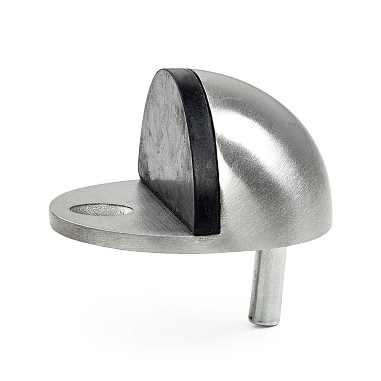 Dørstopper av rustfritt stål med gummibuffer. Beskytter dør og vegg mot slag og skader. For tre- eller steingulv. Ø45x25 mm.