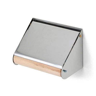 Toalettpapirholder av rustfritt stål, med trerulle.