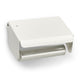 Toalettpapirholder med fast rullholder og fjærende lokk. Rullen skyves inn fra høyre side.