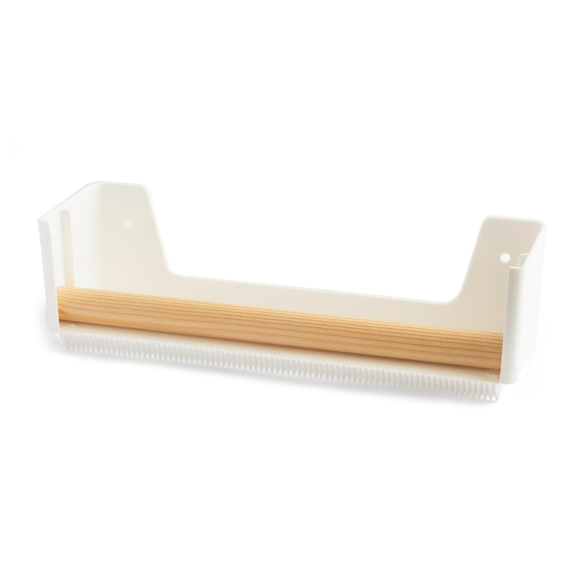 Toalettpapirholder av rustfritt stål, med trerulle.
