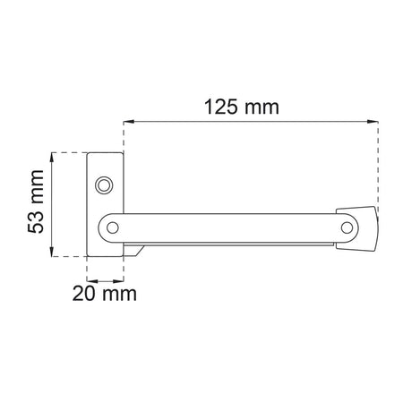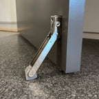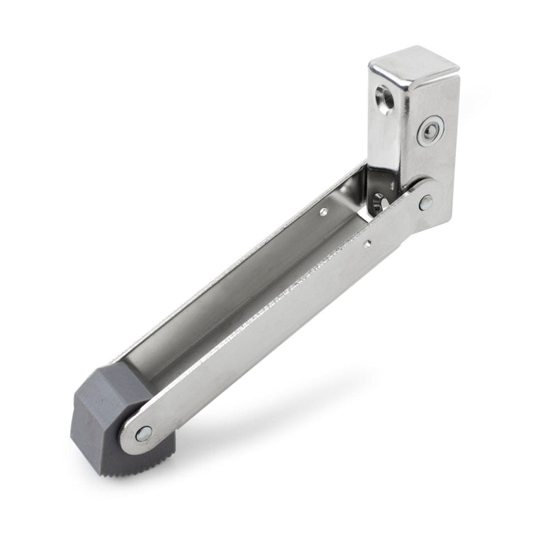 Dørholder av stål, utfoldbar med gummistopper. Leveres inkludert skruer. Holderen monteres på børbladet og felles ut når døren skal stå i fast posisjon.