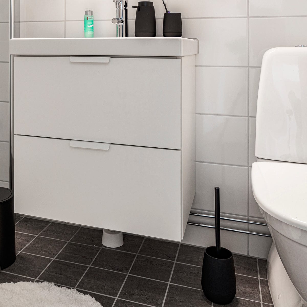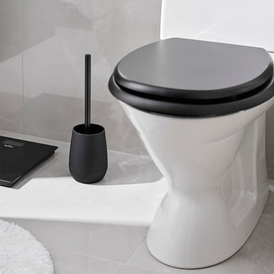 Moderne og stilren toalettbørste laget av plast. Blir en vakker interiørdetalj på badet. Gummiert overflate i matt sort finish. Diameter 111 mm. Høyde 370 mm.