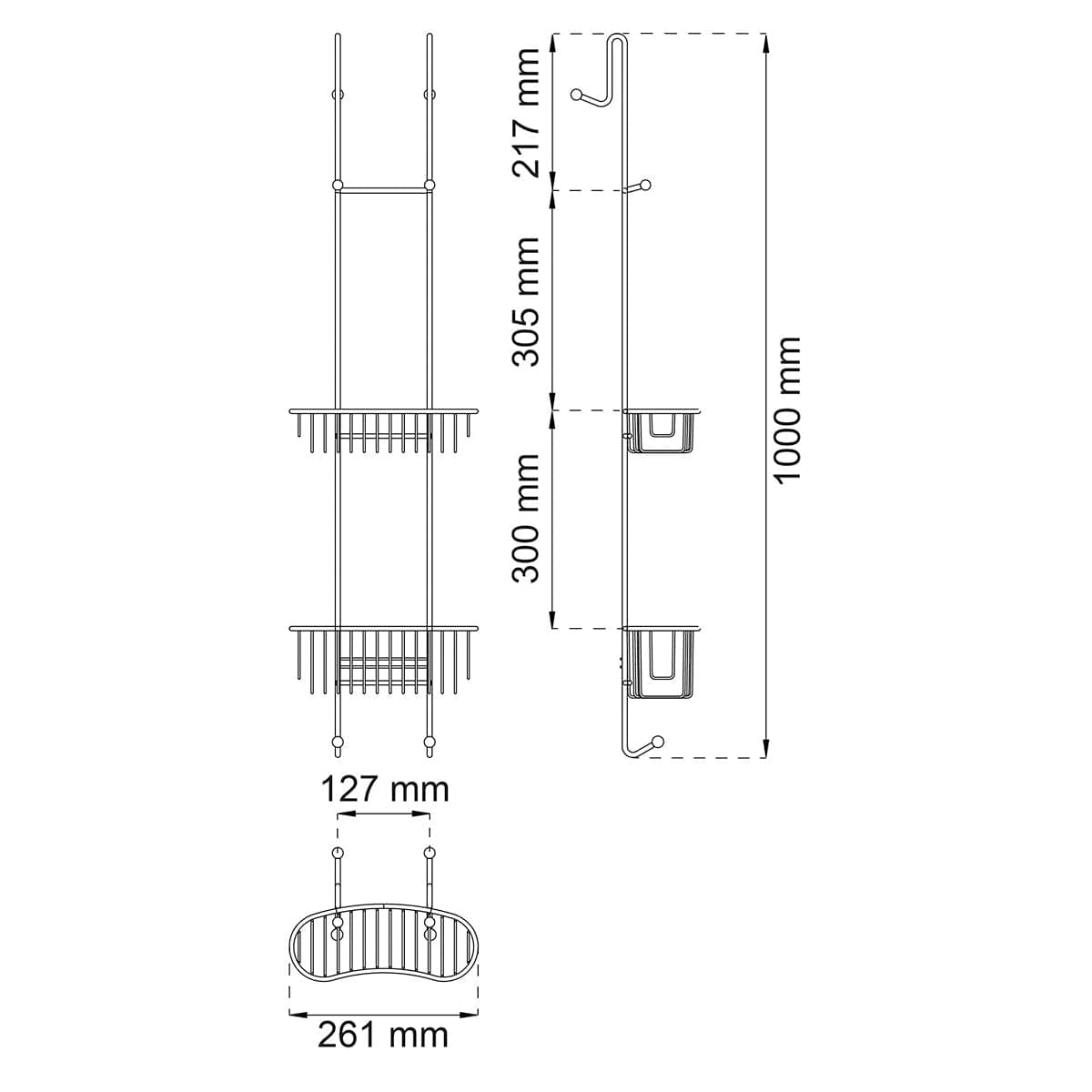 Dusjhylle av rustfritt stål, 18/8. Buet modell. Perfekt for avrundede dusjvegger og kabinett. Henges enkelt over dusjvegg/kabinett og låses med medfølgende sugekopper. Med sin ekstra lengde blir det enda lettere for de minste å nå. 5 års rustbeskyttelsesgaranti.