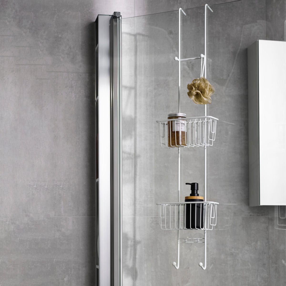 Dusjhylle av rustfritt stål, 18/8. Smal og romslig på samme tid. Med sugekopper som sørger for at hyllen står godt på plass mot dusjvegg/kabinett. Kort opphengskrok, som gjør den perfekt til dusjvegger og kabinett med grovere profil eller karm. 5 års rustbeskyttelsesgaranti.