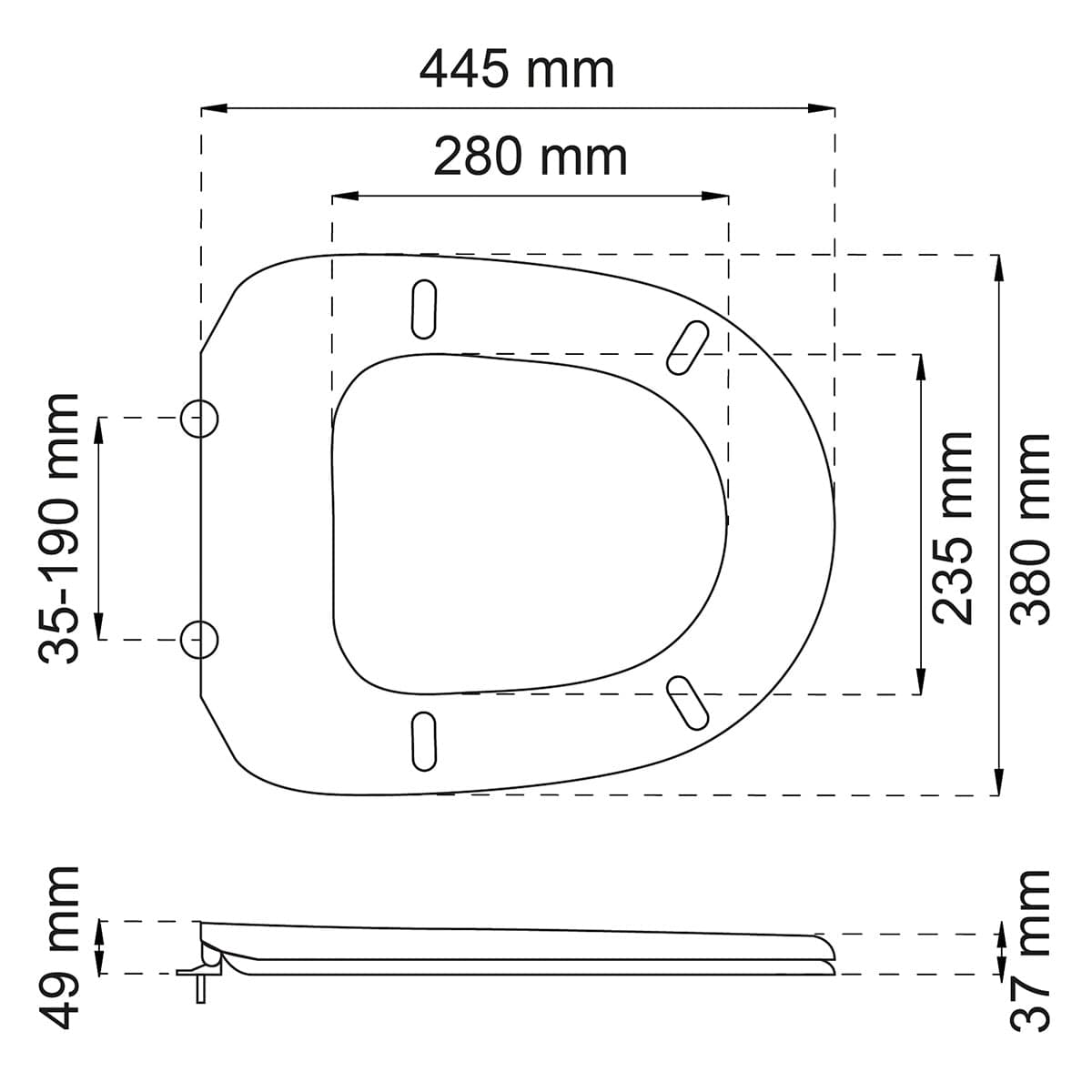 Universal toalettsete av polypropen som passer til de fleste toalett. Stabile og fleksible braketter for CC 35-190 mm. Enkel å montere og fjerne. Enkel å rengjøre. Produsert i Sverige.