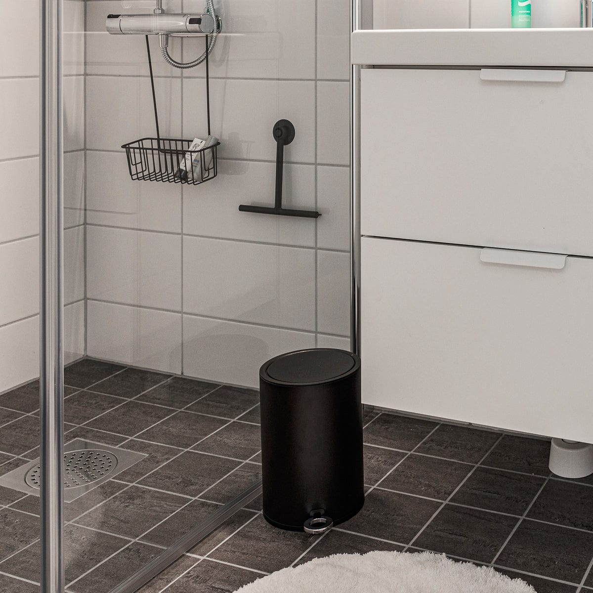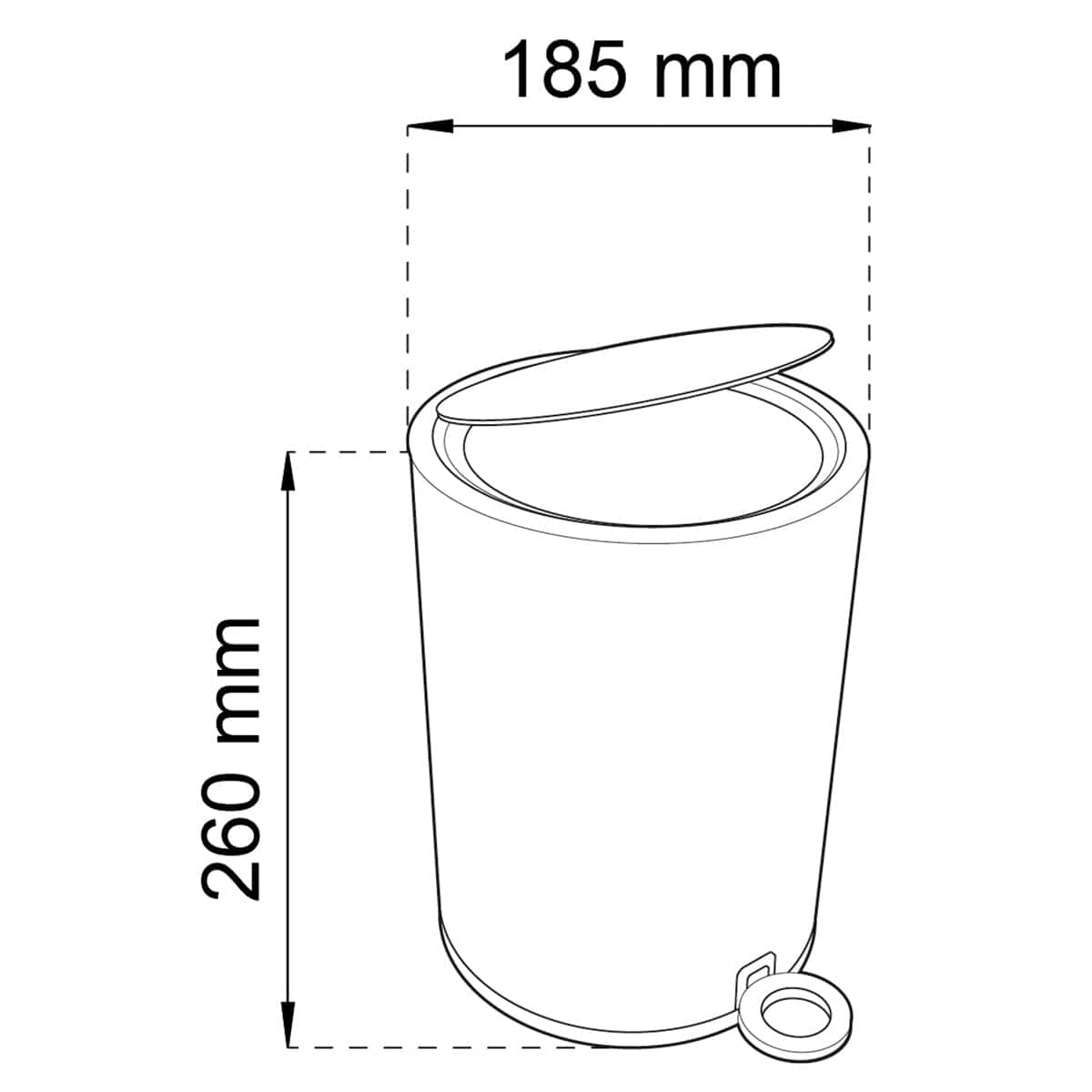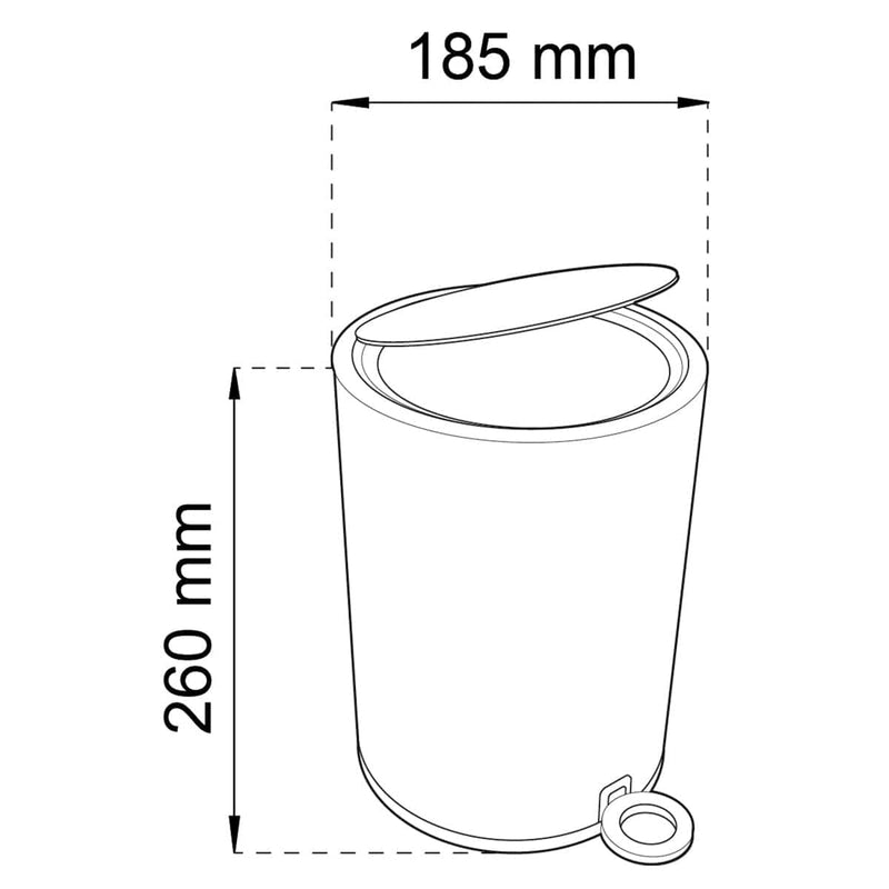 Pedalbøtte med metallokk, plast innvendig. Stilig og moderne design som passer perfekt på badet men også på kjøkkenet for eksempel. Innvendig bøtte som er enkel å løfte ut og rengjøre. Myktstengende lokk. Diameter 185 mm, høyde 260 mm. Volum 3 liter.