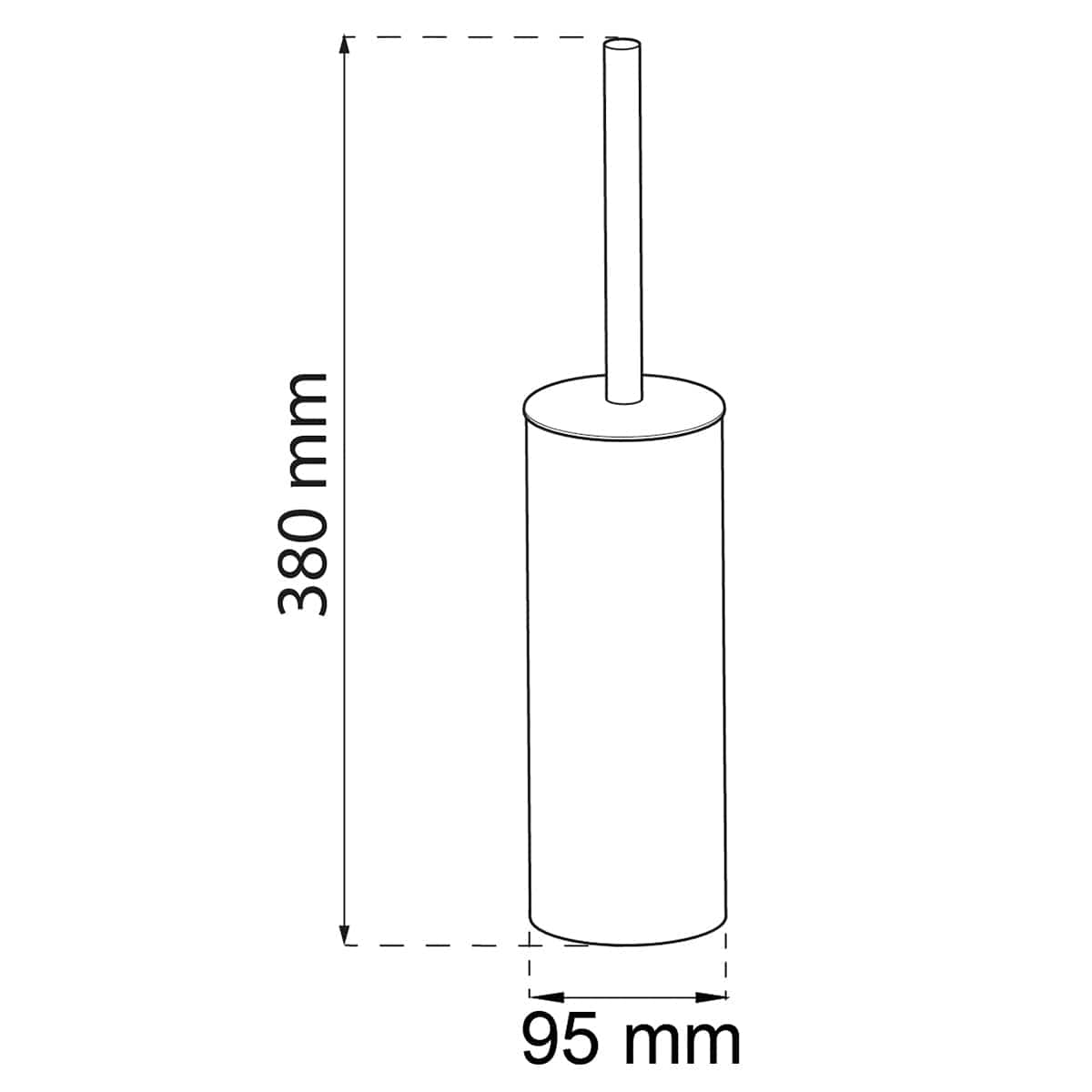 Toalettbørsteholder med metallokk, plast innvendig. Stilren toalettbørsteholder som vil være en fin detalj på de fleste bad. Diameter 95 mm. Høyde 380 mm inkludert skaft.