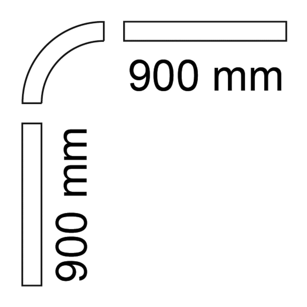 Skinne for dusjforheng. 900x900 mm. Kappes til ønsket lengde med baufil. Med takmontering for ekstra stabilitet. Lengden på takbraketten/pinnen er 600 mm, men kan kuttes. Komplett med dusjforhengsringer. Enkel å montere.