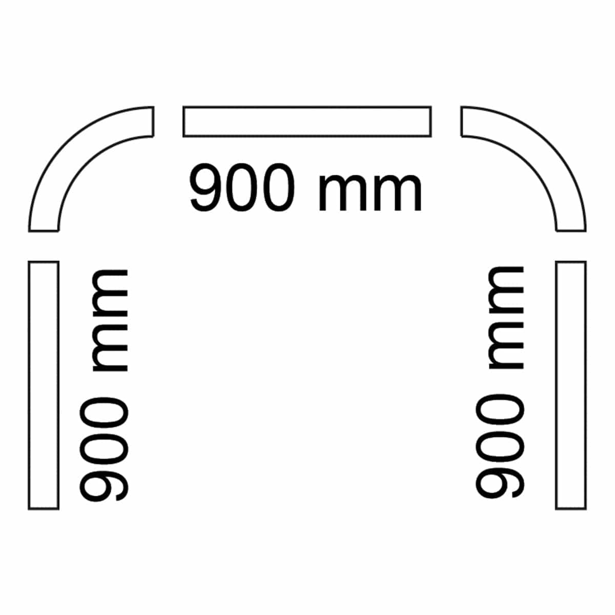 Skinne for dusjforheng i U-form. 900x900x900 mm. Kappes til ønsket lengde med baufil. Med takmontering for ekstra stabilitet. Lengden på takbraketten/pinnen er 600 mm, men kan kuttes Komplett med dusjforhengsringer. Enkel å montere.