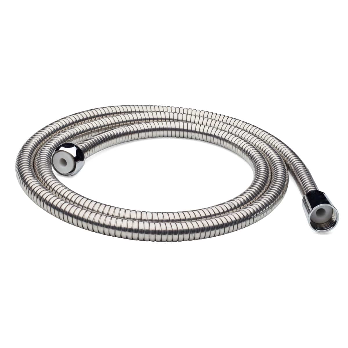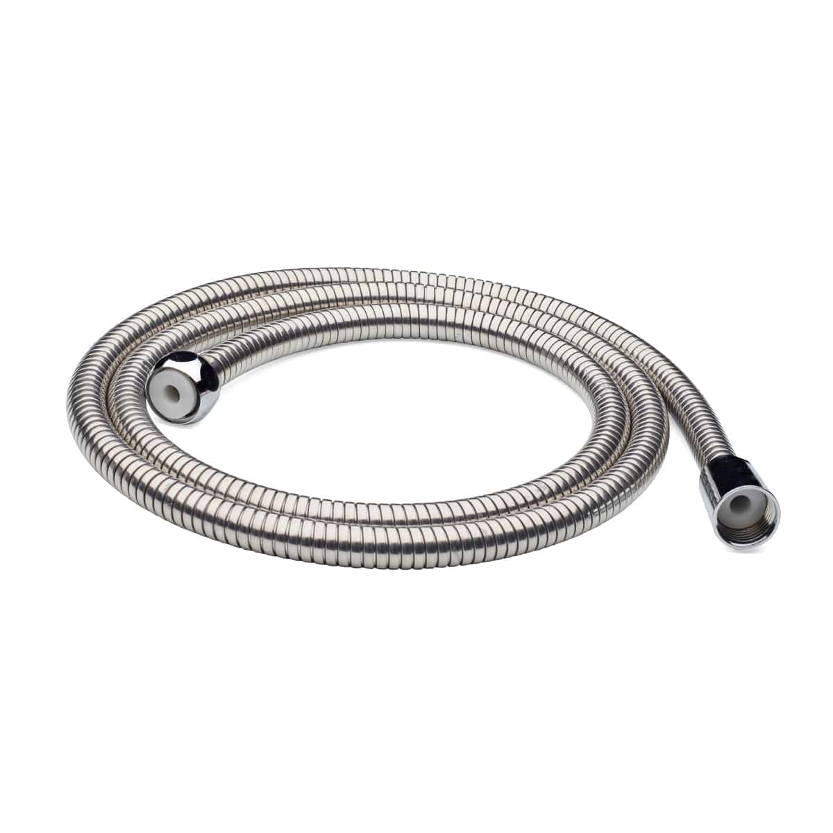Elastisk dusjslange av rustfritt stål. Passer alle blandebatterier og dusjer, G1/2. Bruk de medfølgende sorte pakningene ved montering. Skal ikke stå under konstant trykk. Krom farge.