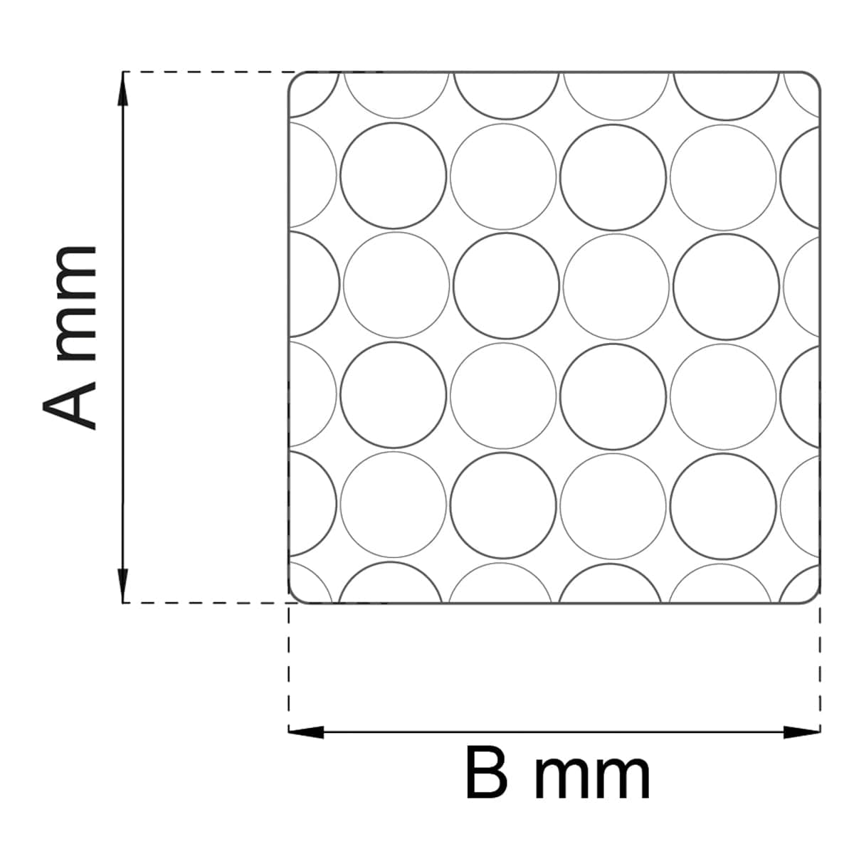 Resirkulerbar, sklisikker matte for dusjkar. Laget av TPE, termoplastisk gummi. Fri for giftstoffer, lateks og PVC. Tåler maskinvask 40° C. 165 sugekopper fester matten til dusjkaret. 500x500 mm.