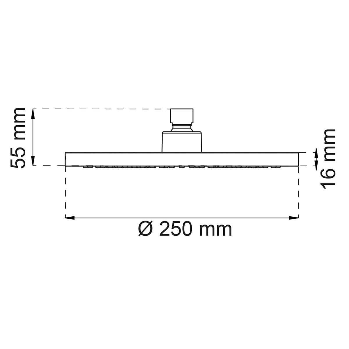 Moderne og stilren rund takdusj. Diameter 250 mm. Med anti-kalk funksjon. Rubber Clean-gummi på munnstykket gjør det enkelt å fjerne kalk. Standard tilkobling 1/2" med bevegelig aksel.