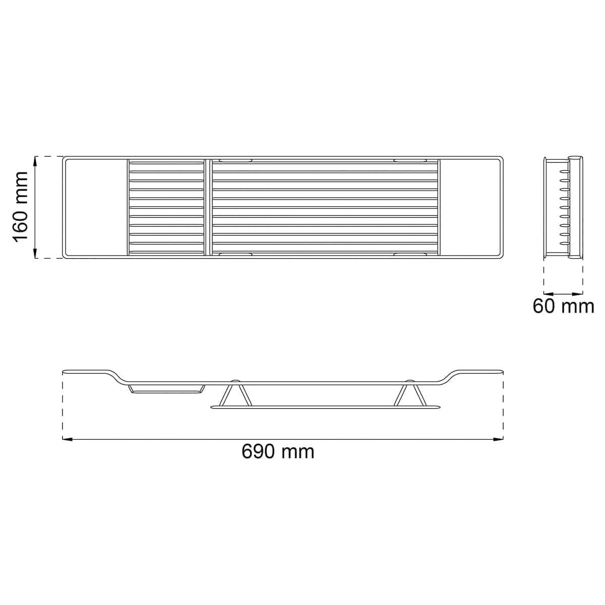 Badekarbro av stål. Legges enkelt mellom badekarkantene. Plasser alt du vil ha for hånden og nyt følelsen av et varmt avslappende bad. 680x160x70 mm. 3 års rustbeskyttelsesgaranti. -