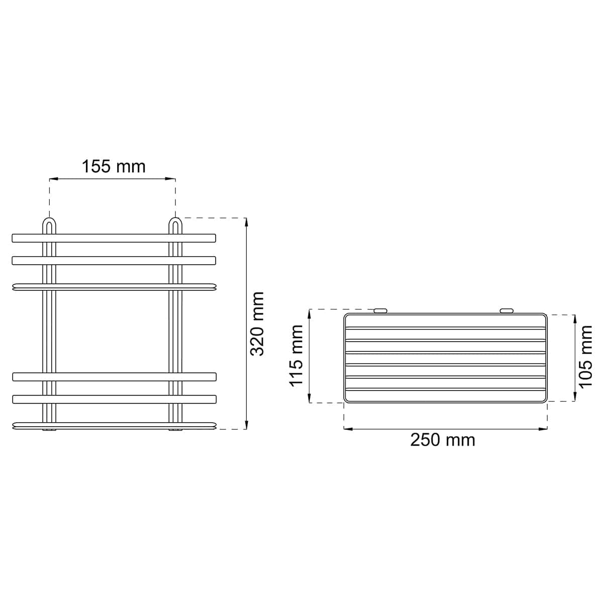 Dusjkurv av stål. Med to hyller for smart oppbevaring. 3 års rustbeskyttelsesgaranti. Skruer til montering medfølger ikke.- 3 års rustbeskyttelsesgaranti