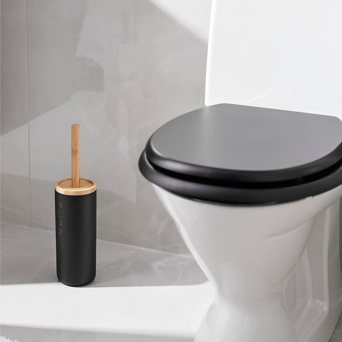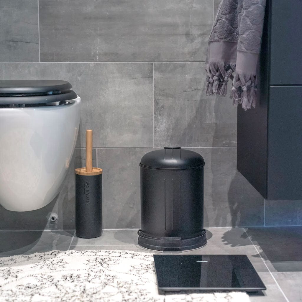 Toalettbørsteholder laget av polyresin og bambus. Moderne og stilren design som blir en vakker detalj på badet. Høyde inkl. skaft, 370 mm. Diameter 100 mm.