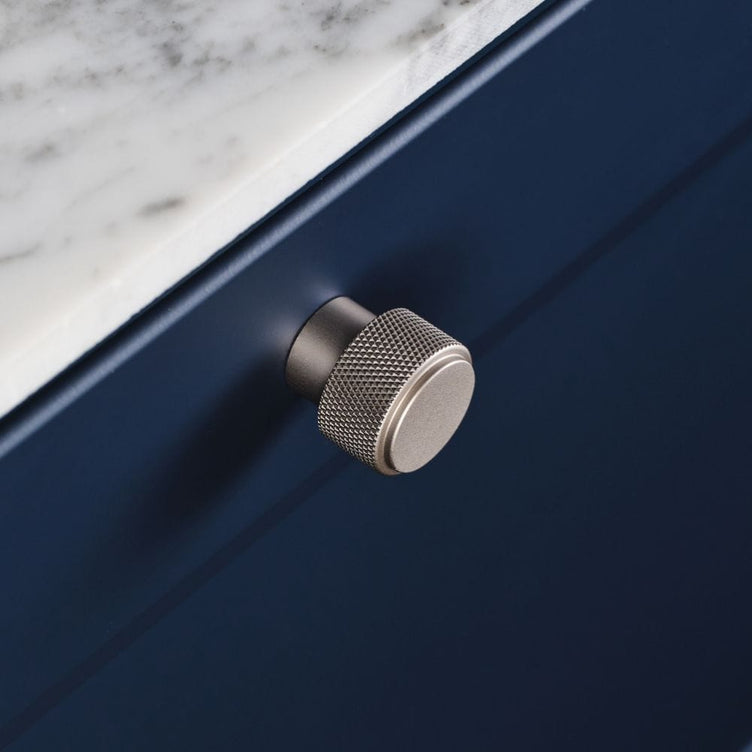 Knopp av aluminium. Moderne design som passer til de fleste skap og skuffer. Ø25 mm. Inkludert skrue.