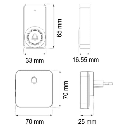 Ringeklokke med enkel montering og opptil 100 meters rekkevidde. Velg mellom 11 ringetoner og 5 volumnivåer, inkludert stille modus. Dørklokken er IP55-klassifisert og modulær, noe som muliggjør kombinasjonen av flere trykknapper og mottakere.