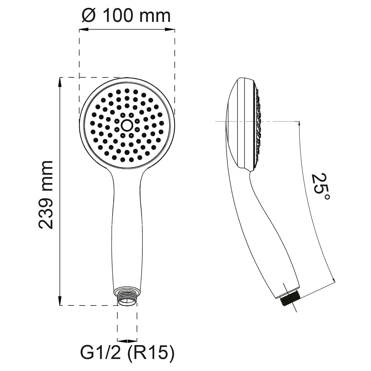 Hånddusj med én stråletype. Med anti-kalk funksjon. Rubber Clean-gummi på dusjhodet gjør det enkelt å fjerne kalk. Dusjhode diameter 100 mm. Passer til alle dusjslanger, G1/2. Vannsparefunksjon, 6,5 liter/minutt.