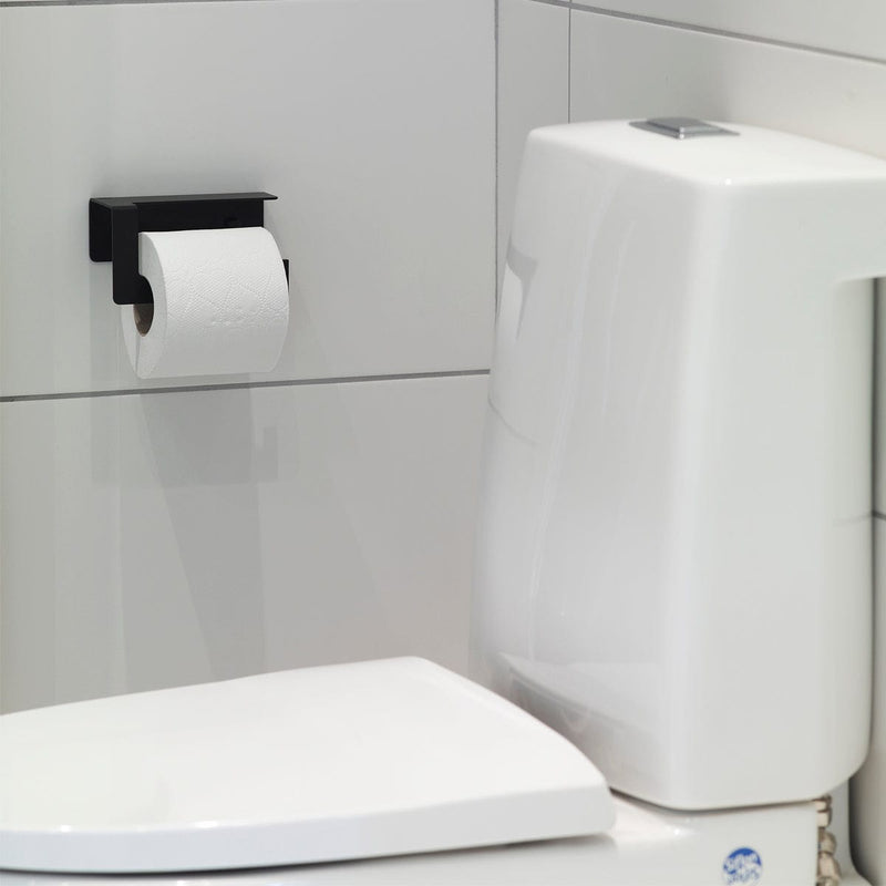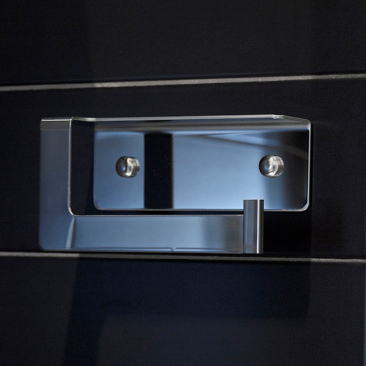 Toalettrullholderav rustfritt stål og sortlakkert stål. Skult innfesting. Kan monteres med skruer eller universalepoxy.