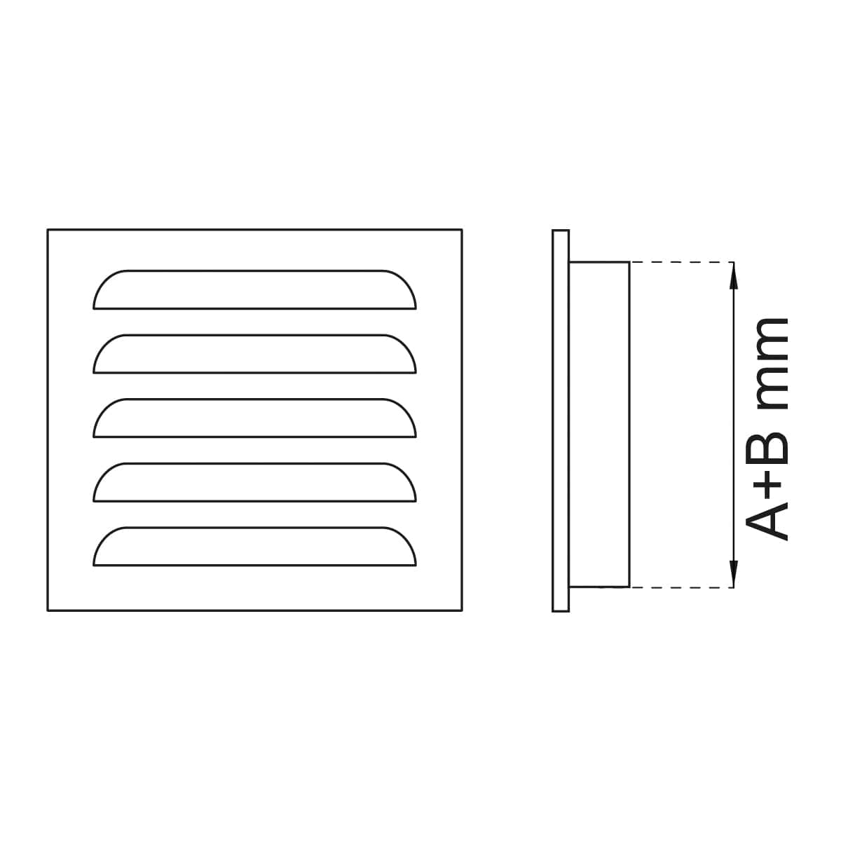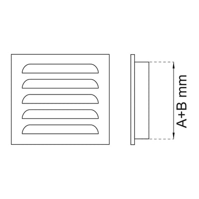 Ventilgitter av nylon med ramme. Med insektnett av glassfiberarmert nylon.