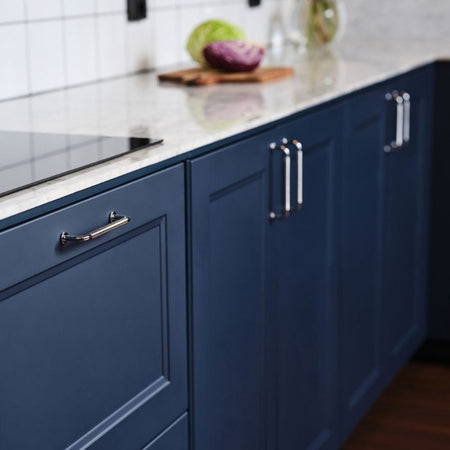 Møbelhåndtak av sink/zamak. Moderne design som passer de fleste skap og skuffer.