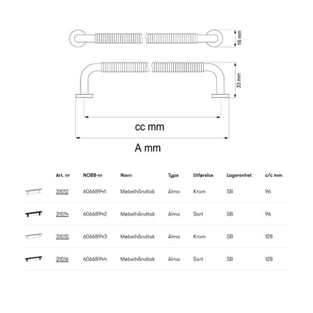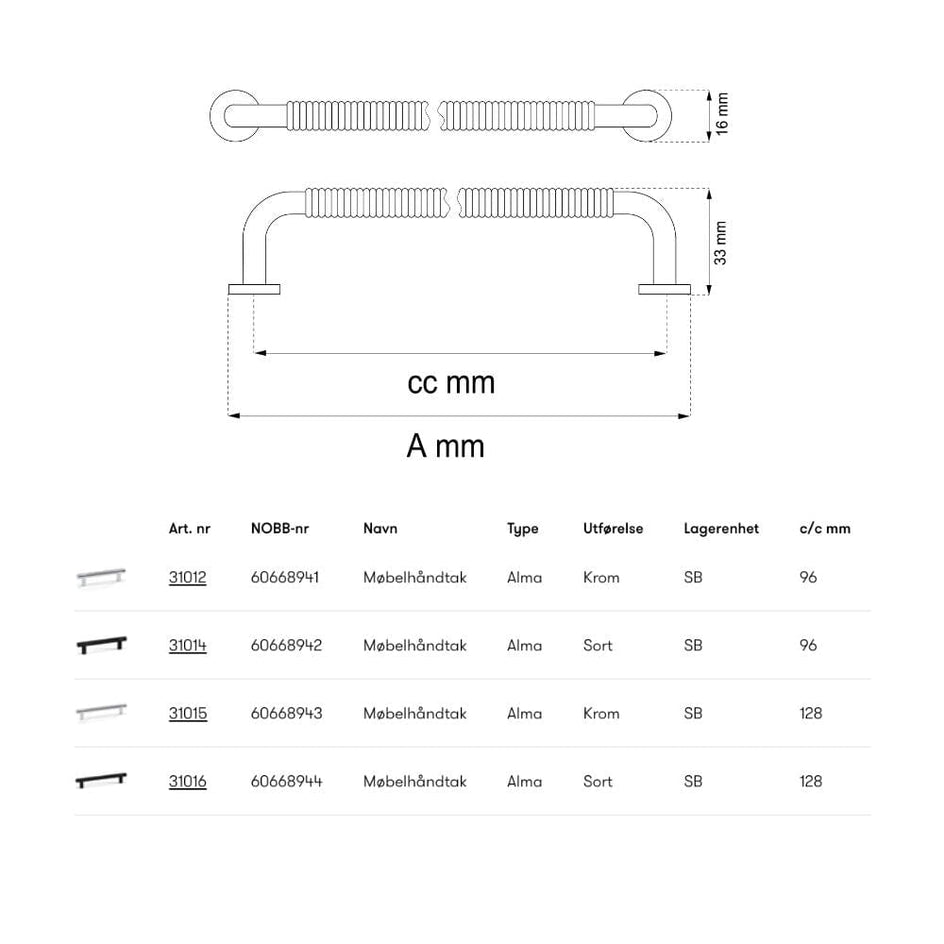 Produkt Id 8359209795783 Merke Habo Art.nr. Farge Lengde (cc) HA-31123 Krom 96mm HA-31125 Krom 128mm HA-31122 Svart 96mm HA-31124 Svart 128mm Vis mer