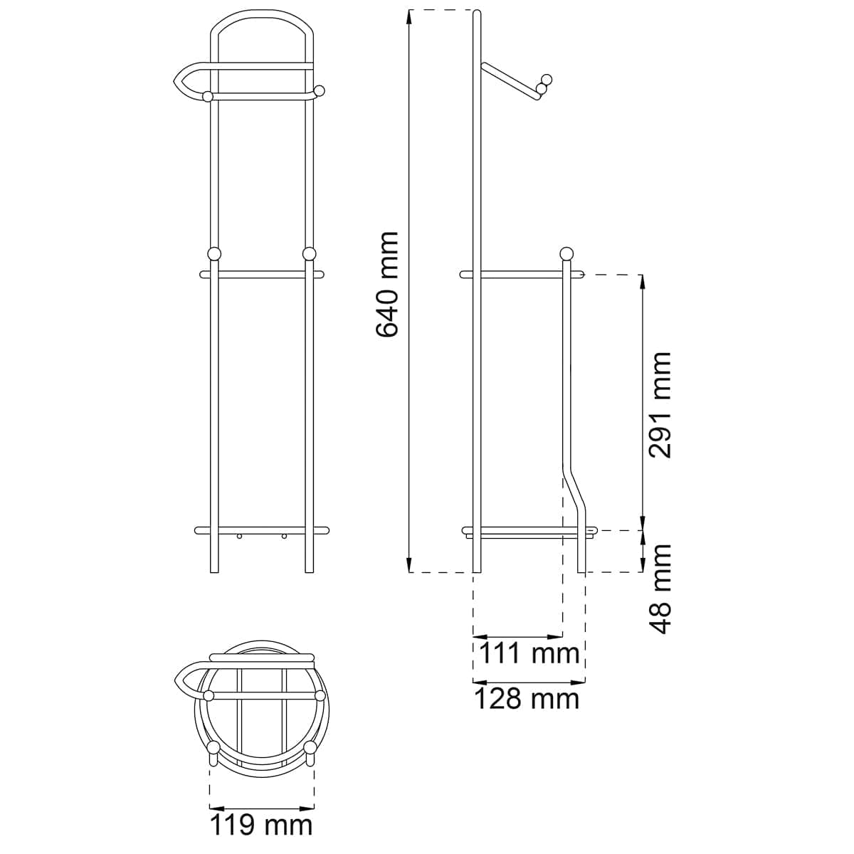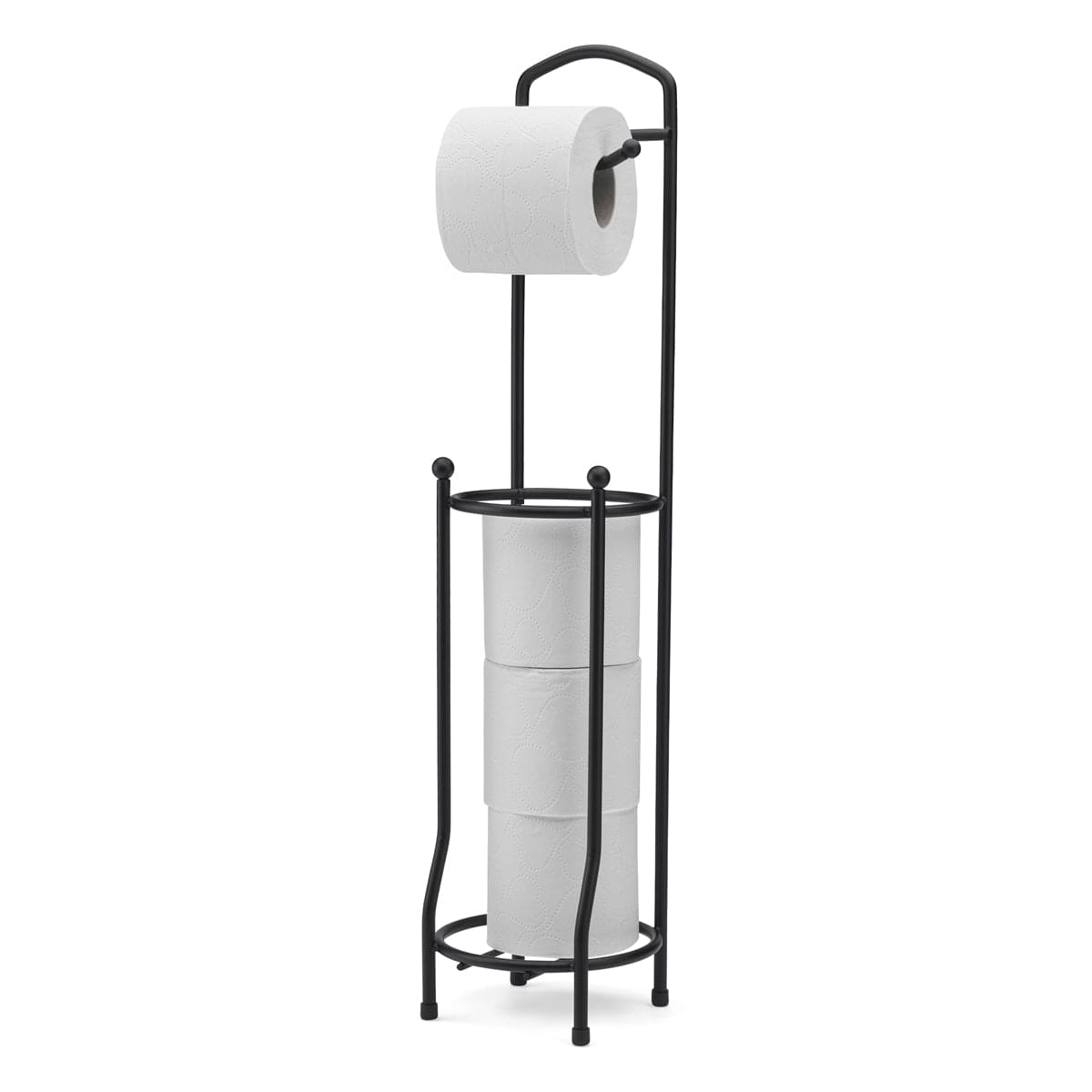 Gulvstående toalettpapirstativ med plass til tre ekstra ruller. Tidløst design