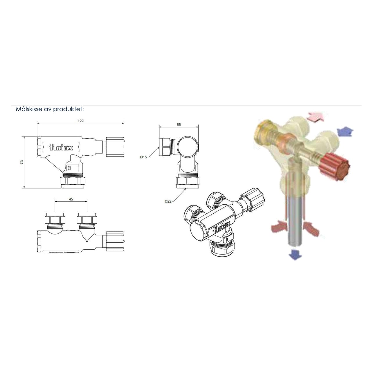 Høiax Aquatemp blandeventil til varmtvannsberedere. Utførelse i avsinkningsfri messing. Dimensjoner Ø15-22 mm.