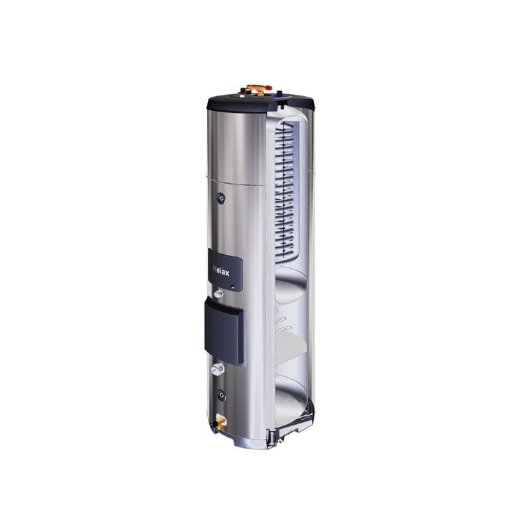 EQS har en spiral i forbruksdelen for indirekte oppvarming av tappevann via varmepumpe med varmtvannsprioritering.