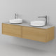 INR Air Wood er et moderne servantskap med hel front i ekte trefinér. De to skuffene gir rikelig oppbevaringsplass, mens den håndtaksløse fronten og den slanke konstruksjonen fremhever Air-seriens lette og naturlige formspråk.