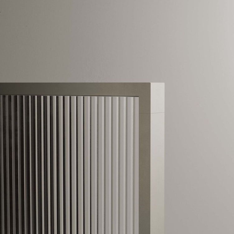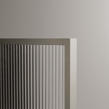 På badet tar Edge plass som et vakkert maleri, symmetrisk og innrammet i anodisert aluminium i to utførelser. Det unike konstruksjonen til rammen skaper et sofistikert skyggespill mot veggen. Glasset vender innover i dusjen, noe som framhever den utvendige formen på rammen og forenkler rengjøring. Navet i Edge er hengslet med aksel i rustfritt stål - et utmerket eksempel på perfeksjonen i mekanikken som kjennetegner serien. Hjørnene på rammen er i massiv aluminium med innovativ konstruksjon som skjuler alt som ikke er estetisk.
