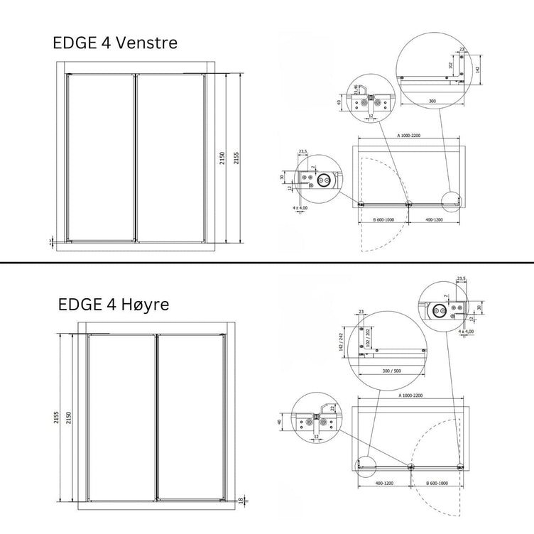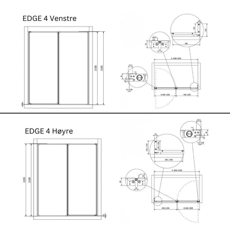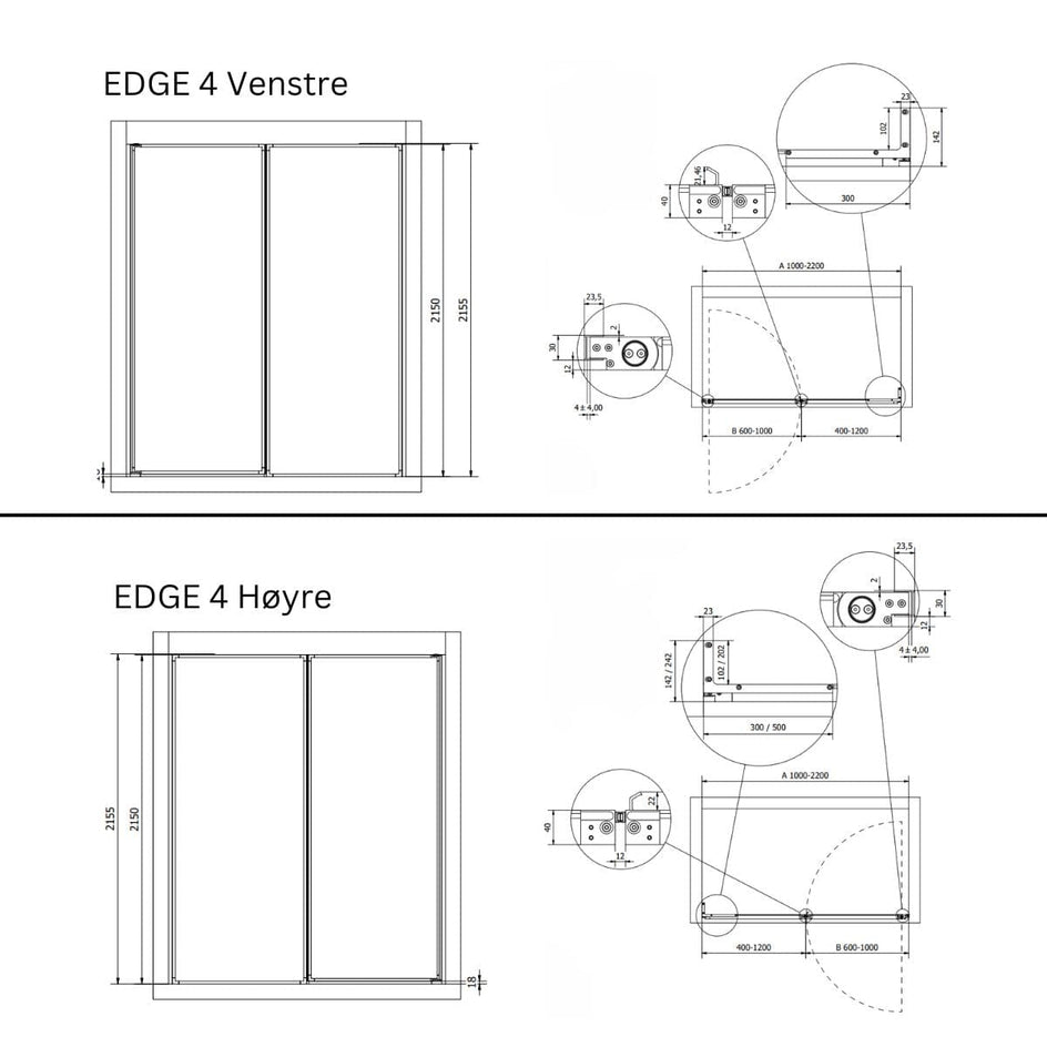 Høyden på Edge er 2150 mm, det vil si litt høyere enn de fleste andre dusjvegger. Velger du Edge 20 Plus kan du få den helt opp til taket.