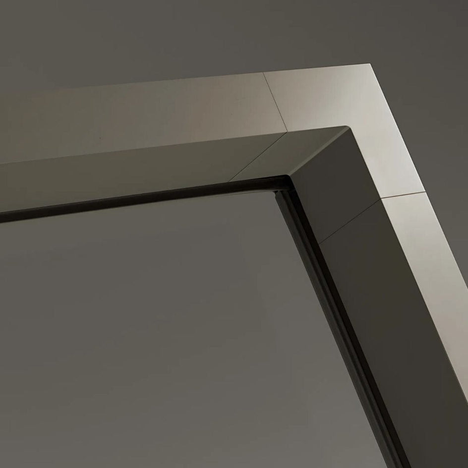 På badet tar Edge plass som et vakkert maleri, symmetrisk og innrammet i anodisert aluminium i to utførelser. Det unike konstruksjonen til rammen skaper et sofistikert skyggespill mot veggen. Glasset vender innover i dusjen, noe som framhever den utvendige formen på rammen og forenkler rengjøring. Navet i Edge er hengslet med aksel i rustfritt stål - et utmerket eksempel på perfeksjonen i mekanikken som kjennetegner serien. Hjørnene på rammen er i massiv aluminium med innovativ konstruksjon som skjuler alt som ikke er estetisk.