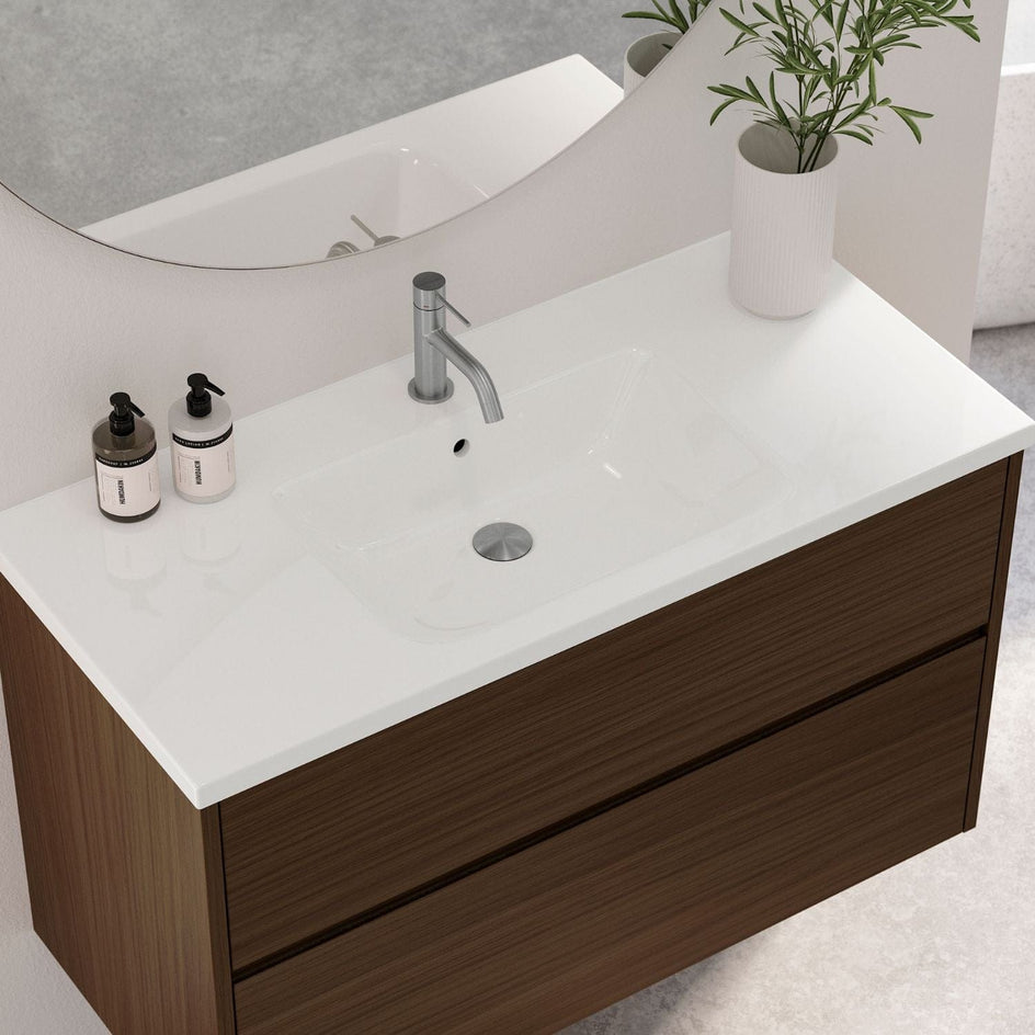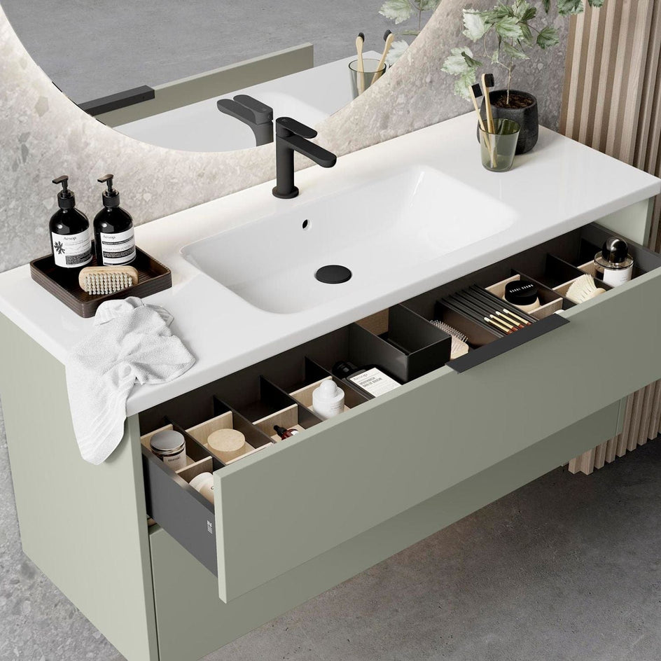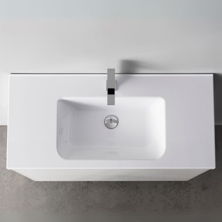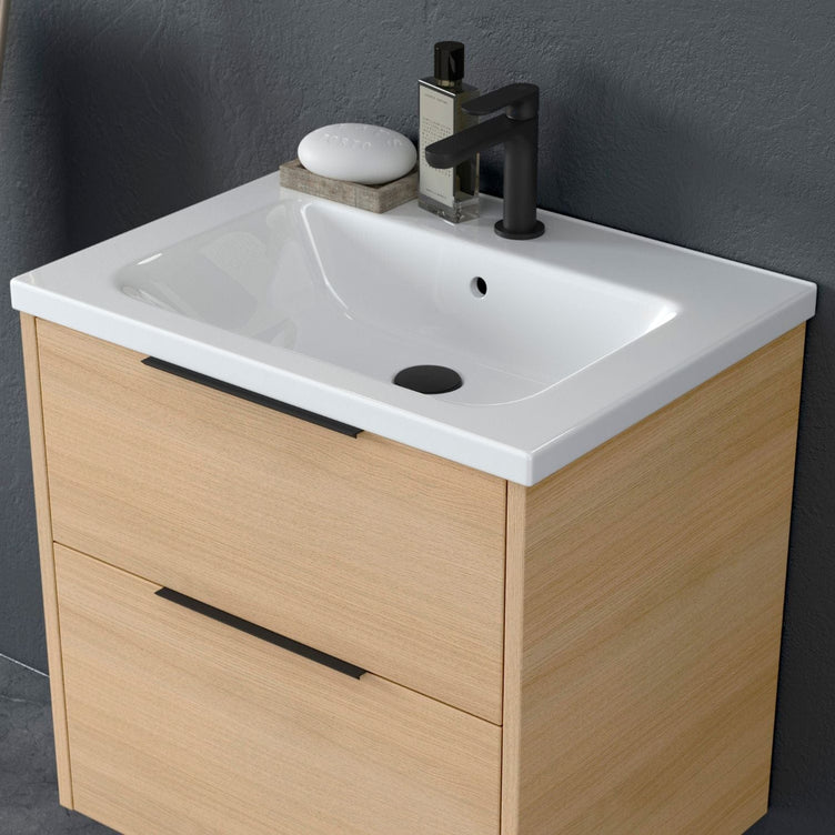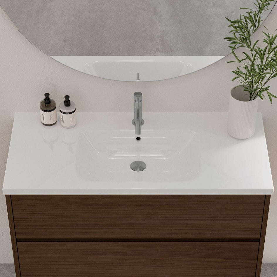 Servant for møbelmontering i hvitt porselen med blandehull.