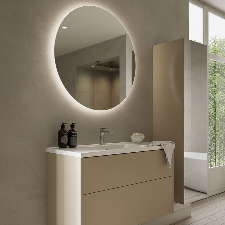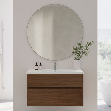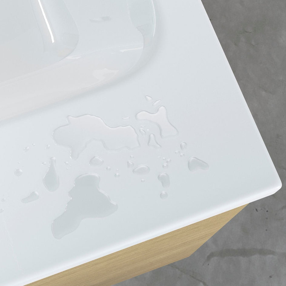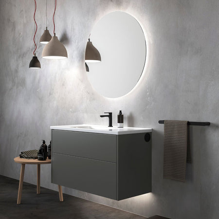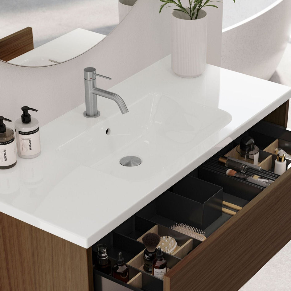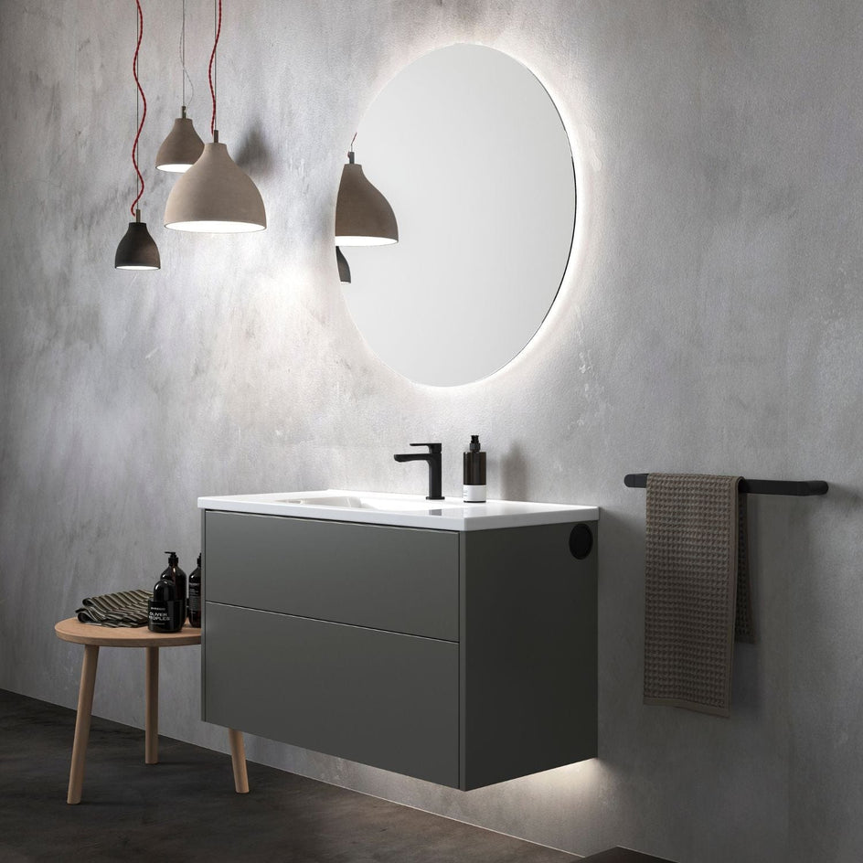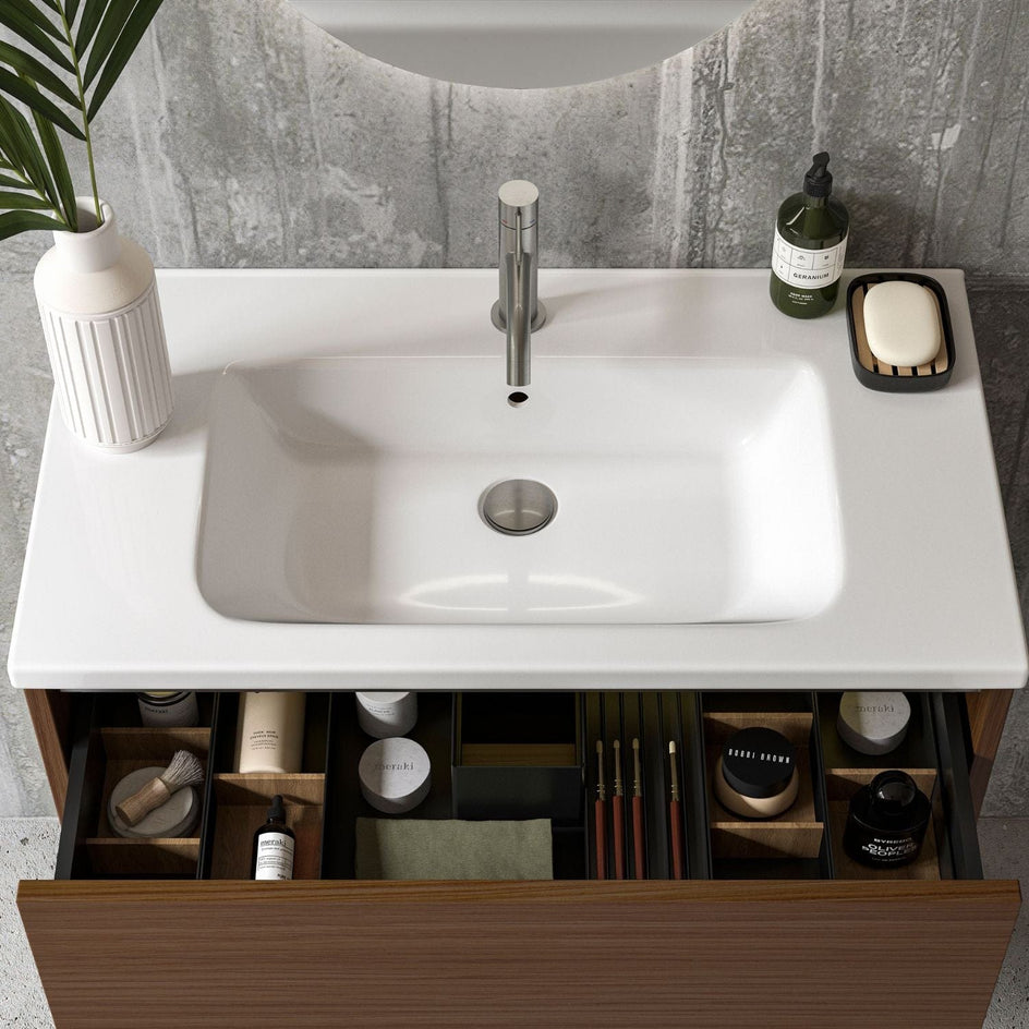 Servant for møbelmontering i hvitt porselen med blandehull.