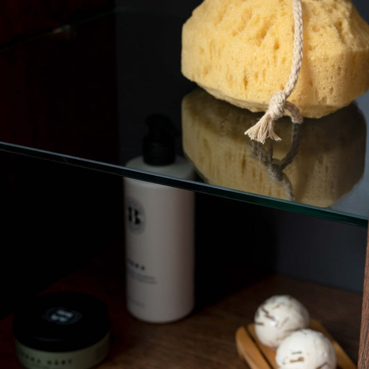 - 1 fast hylle i tre. De øvrige i 6 mm herdet glass, samtlige flyttbare.