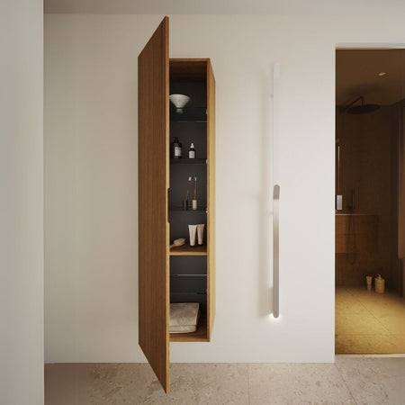 Svenskprodusert høyskap som med sin slette dør og innfreste grep i døren kompletterer de ulike INR baderomsseriene. Med en dybde på kun 30 cm og en bredde på 40 cm er det et av INR sine grunnere skap, ideelt for både store og små bad. Push følger med som standard, noe som gjør det mulig å plassere to skap ved siden av hverandre. Skapet har en fast trehylle og fire flyttbare hyller i 6 mm herdet sikkerhetsglass. Kompletter med det praktiske og smarte tilvalget Plus Power - stikkontakt som du kan plassere fritt etter behov.