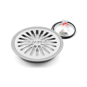 flisramme og tilhørende underdel med sentreringsfunksjon. Passer alle JAFOs 150-gulvsluk i plast, bortsett fra 86 mm. Underdelen gjør at silen alltid sentreres over gulvsluket, slik at vannlåsen enkelt kan tas opp ved behov. Flisrammen består av: Grå klemring, grå flisrammesentrering, 5 stk. tilhørende spesialskruer uten spiss i syrefast rustfritt stål, O-ring, flisramme 155 x 155 x 6 mm samt gulvslukrist med spaltefunksjon laget i 2 mm tykt syrefast rustfritt stål